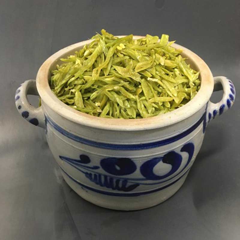 Heerlijke zoute snijbonen worden door ons zelf ambachtelijk vers gesneden in juni en ingemaakt in zout.